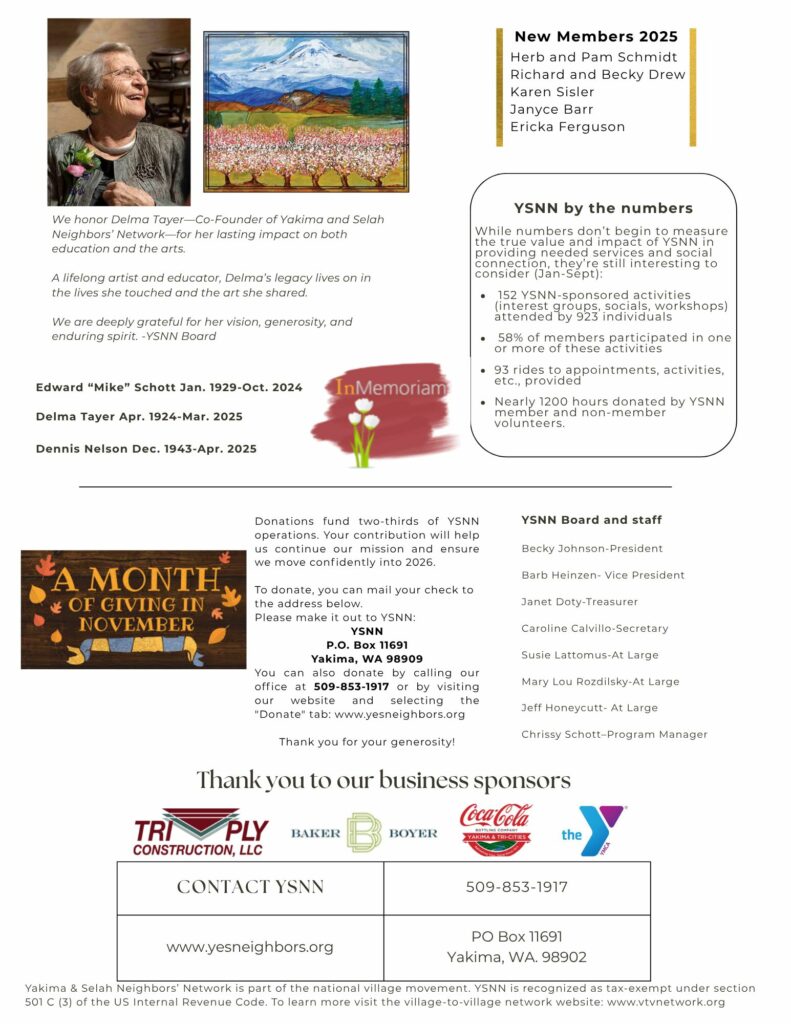 Delma Tayer will celebrate her 97th birthday in April. She still drives, but physical therapy can be tiring so a volunteer with the Yakima & Selah Neighbors’ Network drives her to and from appointments. The well-known artist, who lives in Selah, appreciates the...